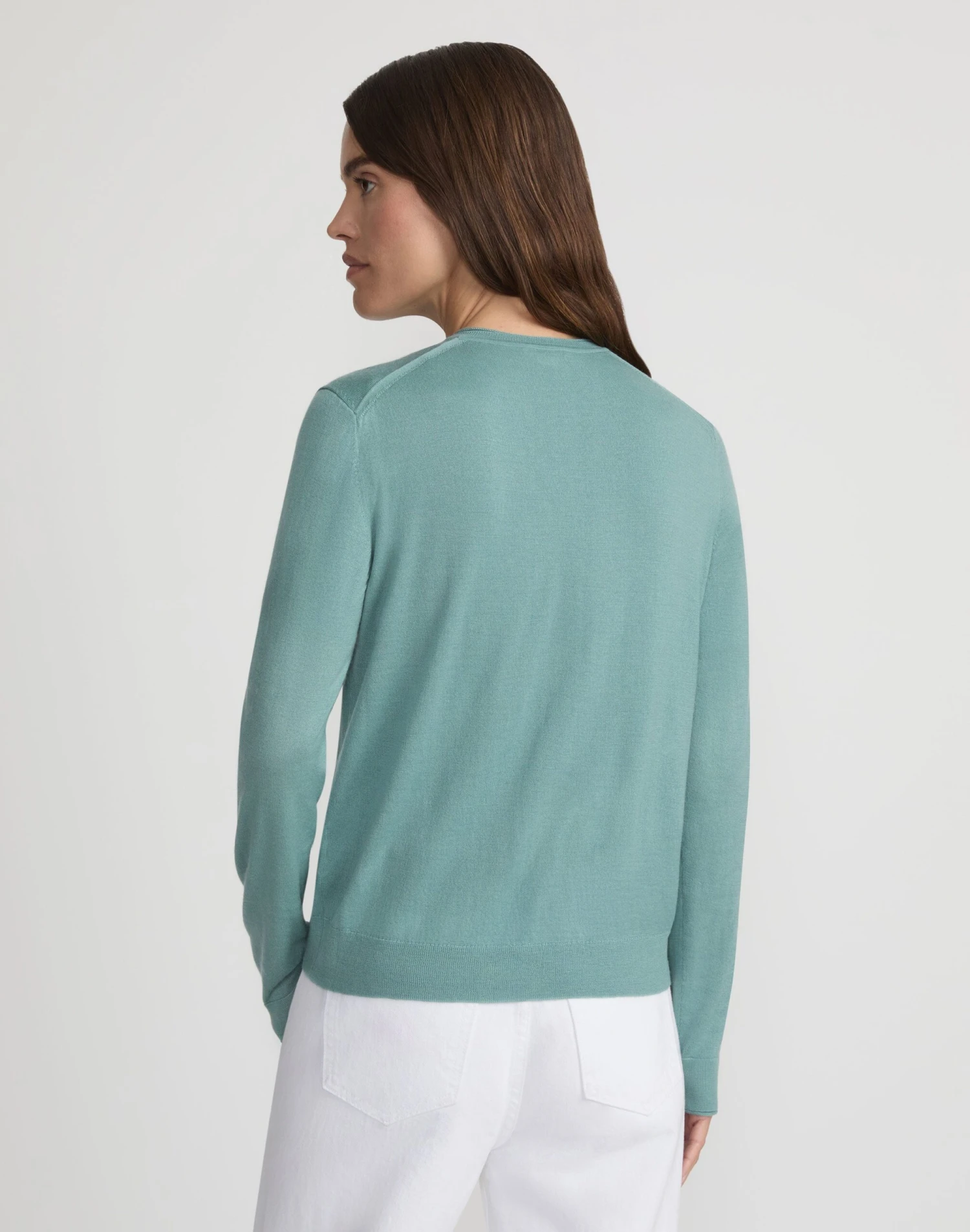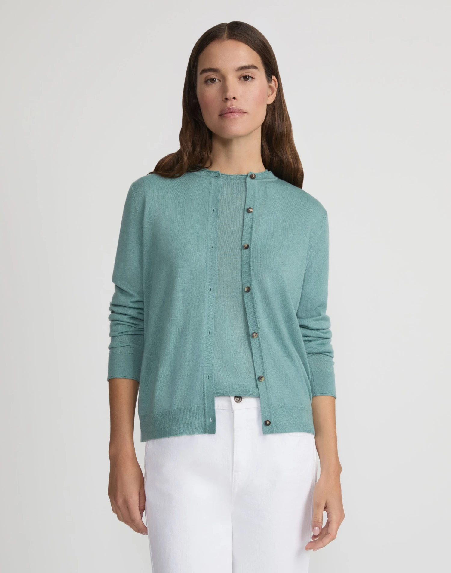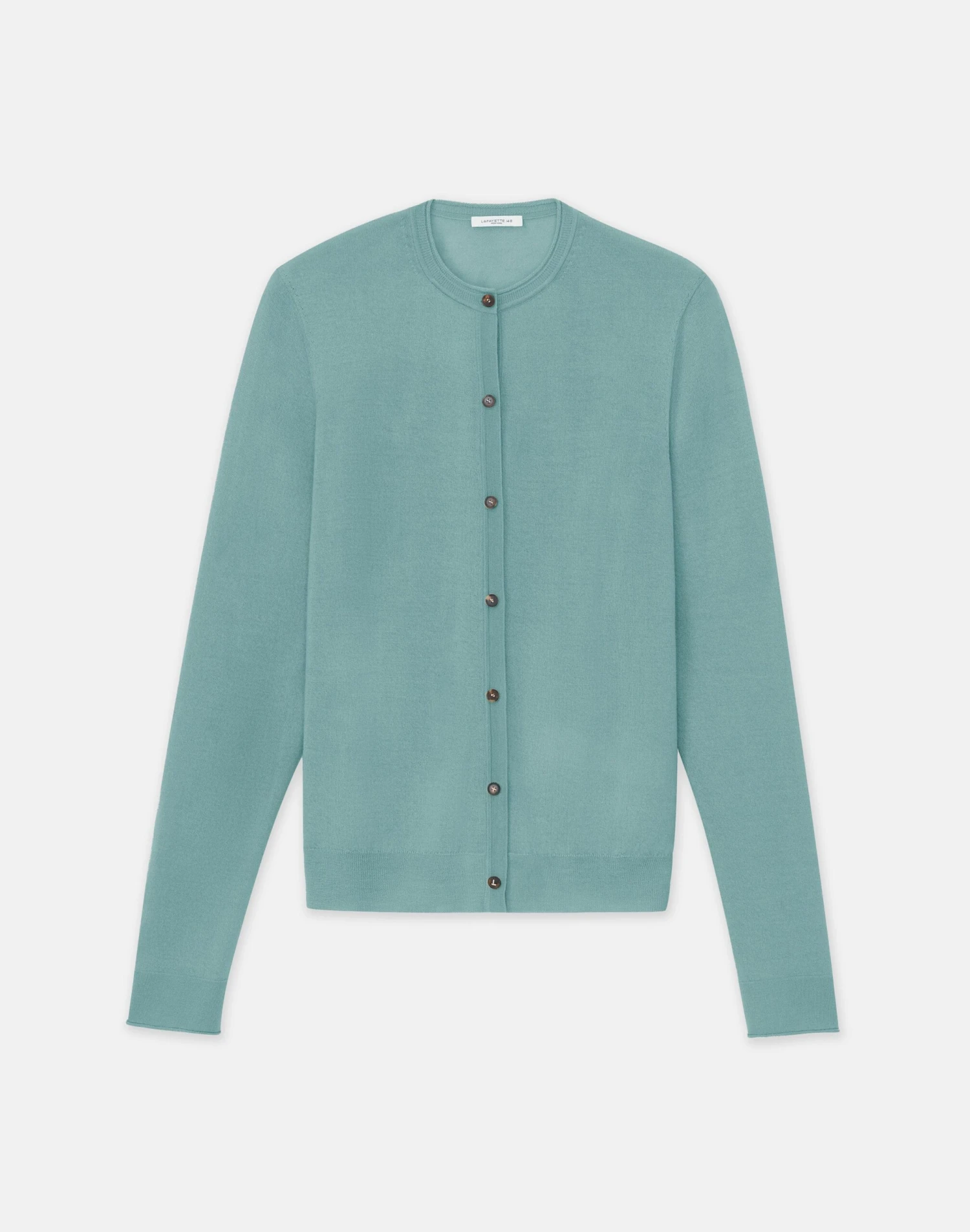 Underpinned by understated luxury, this crewneck cardigan is crafted in signature ultra-light, fine gauge pure cashmere. Exquisite alone or layered, the relaxed design is versatile with a full-length button placket, ribbed trim and delicate rolled edges. Wear it as a set with the coordinating short sleeve sweater.
