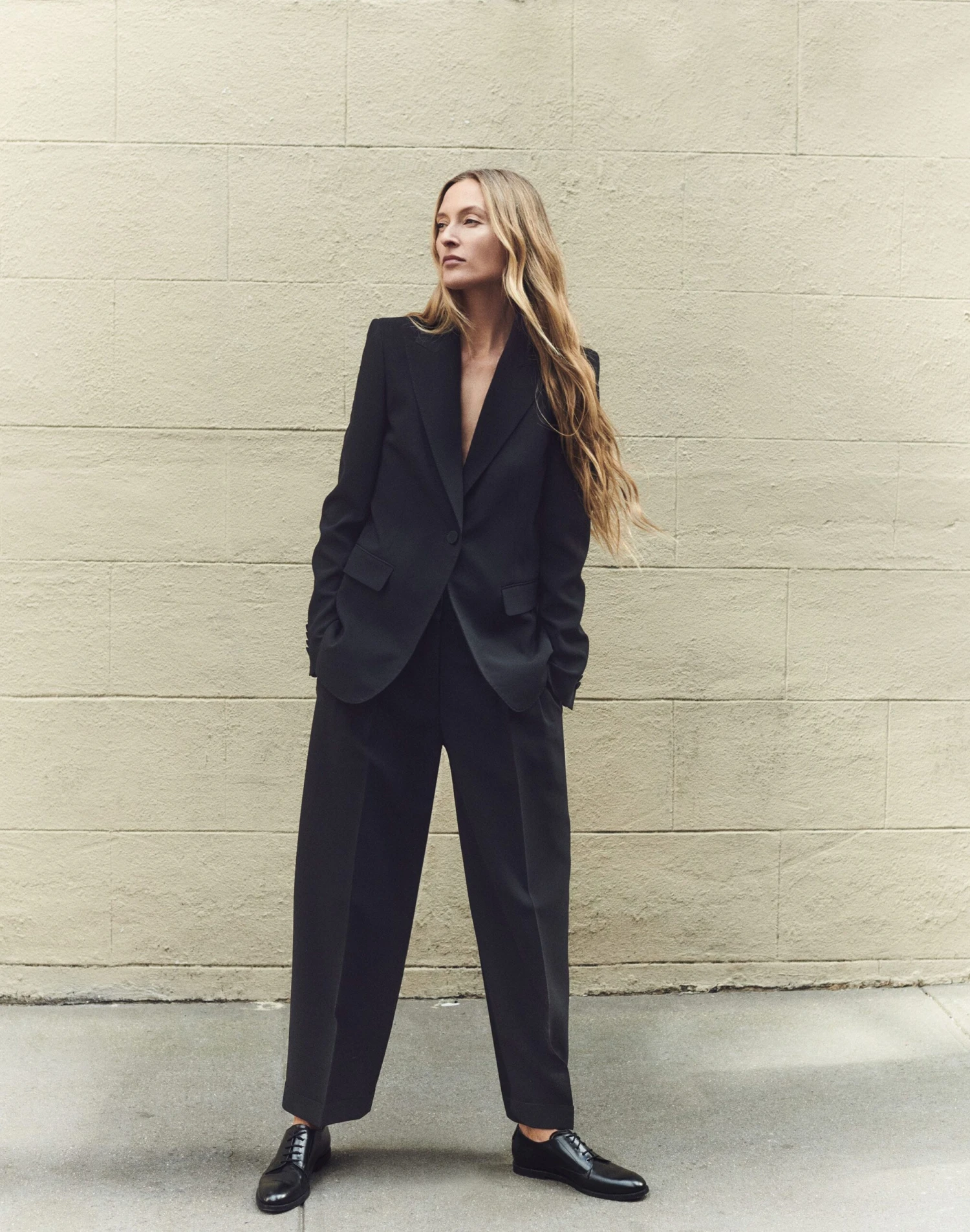 Sharply tailored with feminine cutlines, the season’s new single button blazer is all about structure, impeccably constructed in signature Finesse Crepe—a richly textured fabric with refined drape. The contouring fit is framed by strong shoulders and a waist-defining cutaway hem, while peaked lapels, buttoned cuffs and vented back nod to the House’s sartorial codes.