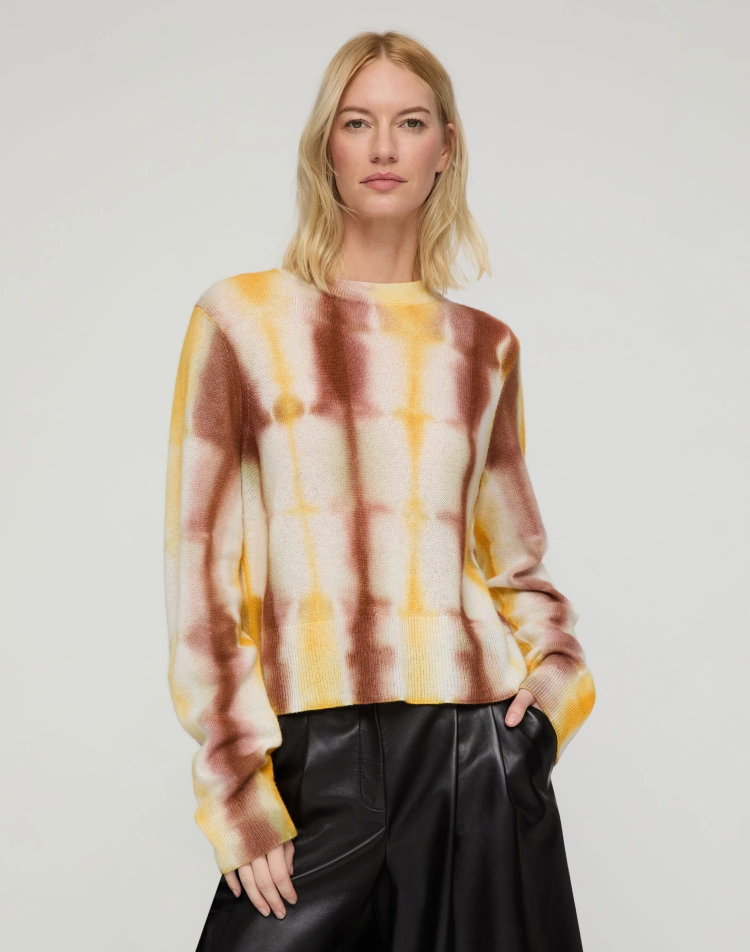 Hand-dyed ultra-soft cashmere adds an artisanal twist to the perfected crewneck sweater, creating a one-of-a-kind piece. It’s lightweight with an easy, relaxed fit, framed by wide ribbed trim.