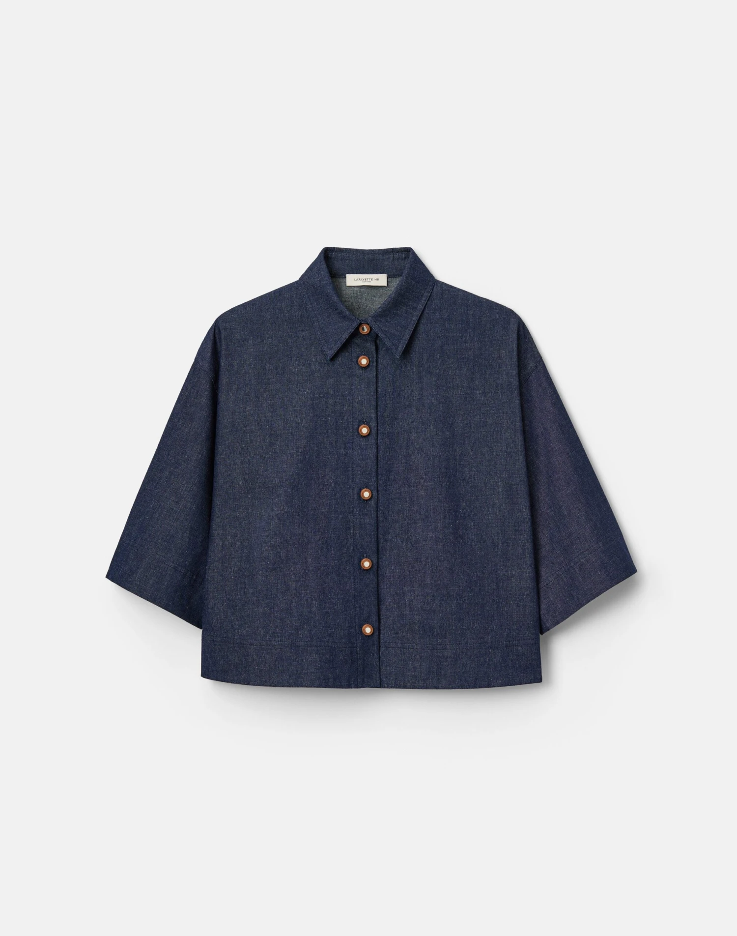 This short sleeve shirt is crafted from ultra-light denim made with pure cotton and garment-washed for added softness. The boxy, cropped shape fastens with Branded leather buttons.