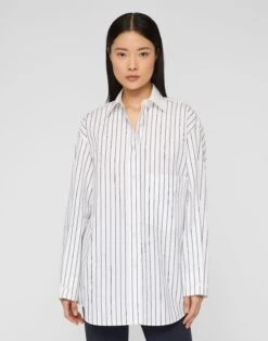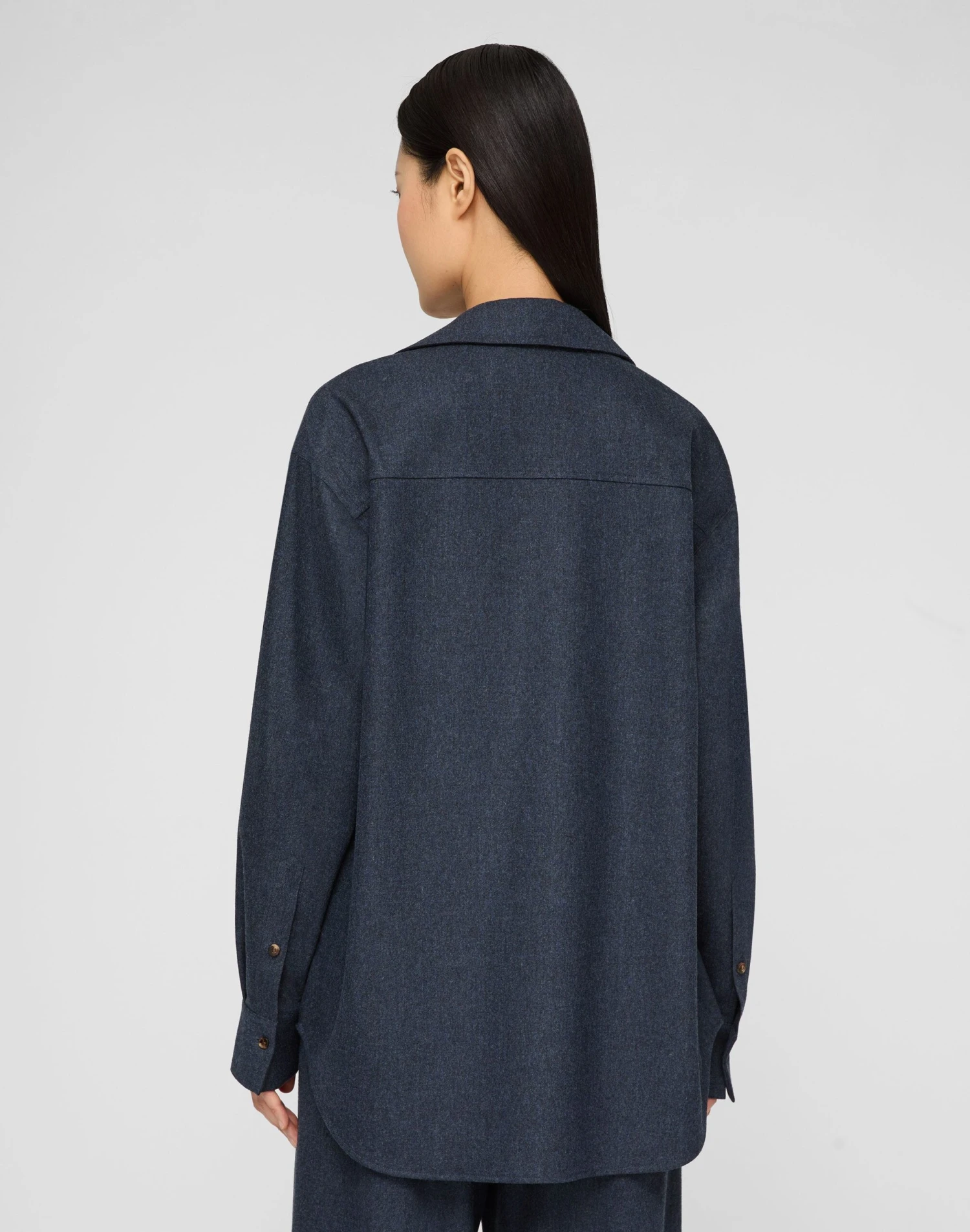 Defined by oversized flap pockets, this collared popover blouse is crafted in lightweight brushed flannel woven from the finest Merino wool infused with cashmere. The relaxed shape extends through dropped shoulders to an elongated hem, finished with buttoned cuffs.